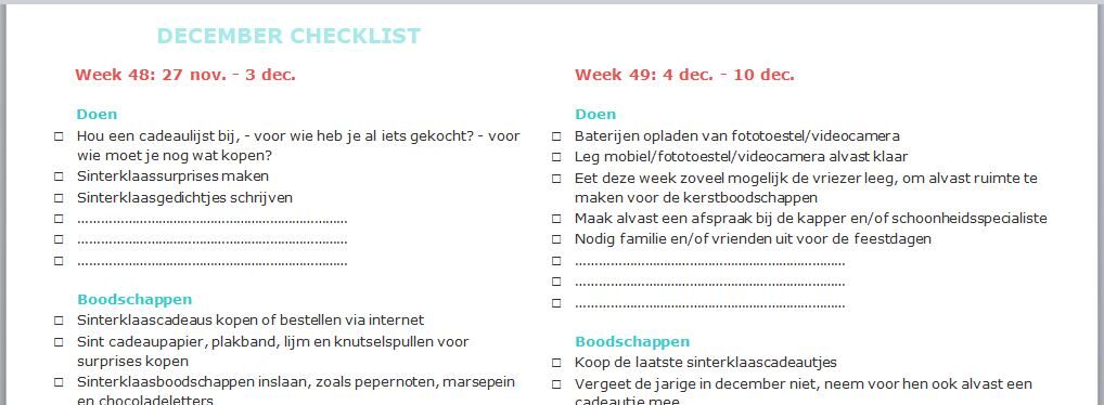 Plan huishoudelijke taken in Vind jij het lastig om het overzicht te bewaren over huishoudelijke klussen die je niet wekelijks hoeft te doen? Dan komt het schoonmaakschema, achter in de Organizing Agenda, als geroepen. Hierin kun je de tweewekelijkse, maandelijkse en halfjaarlijkse huishoudelijke klussen voor het hele jaar inplannen. Alles ingevuld? Mooi, dan …