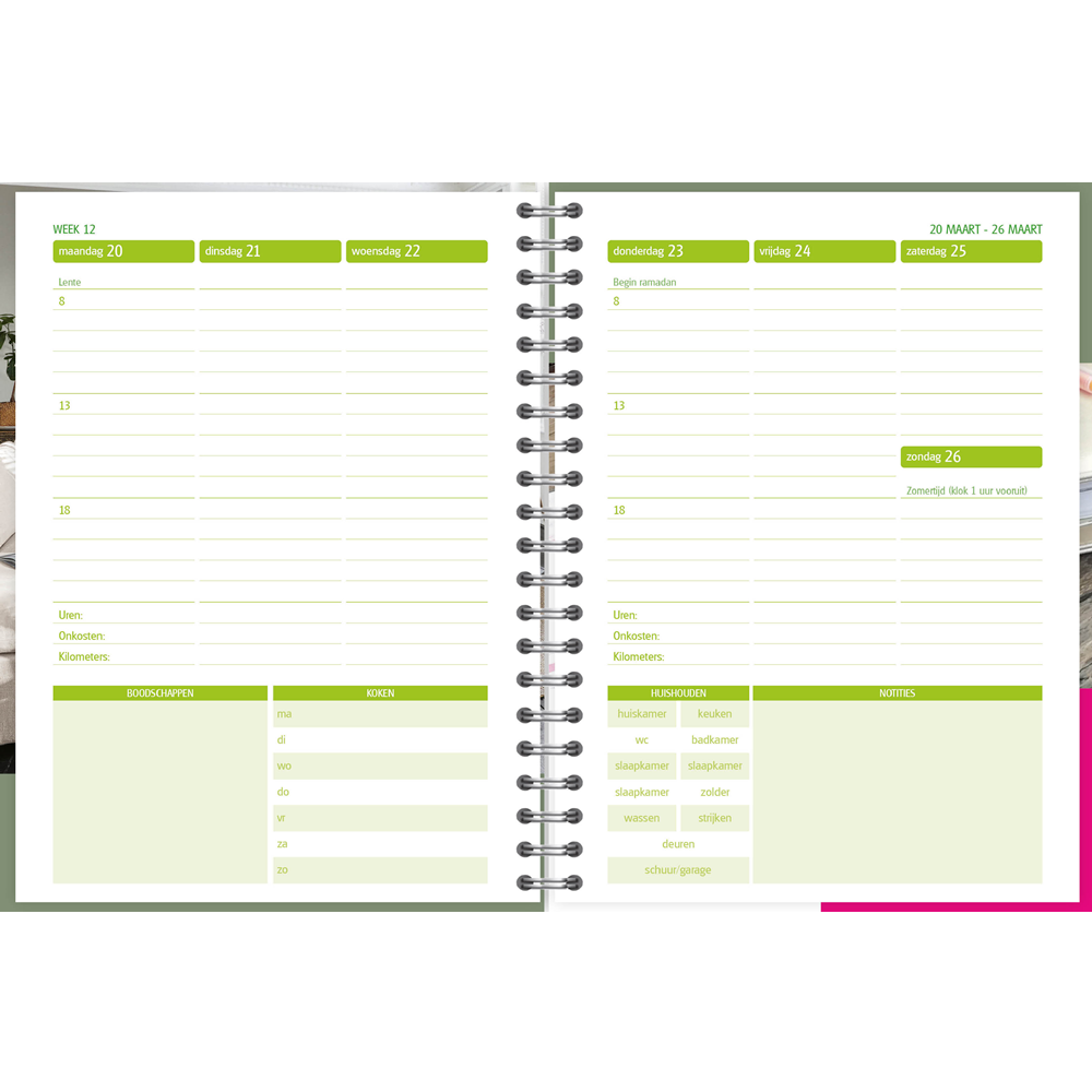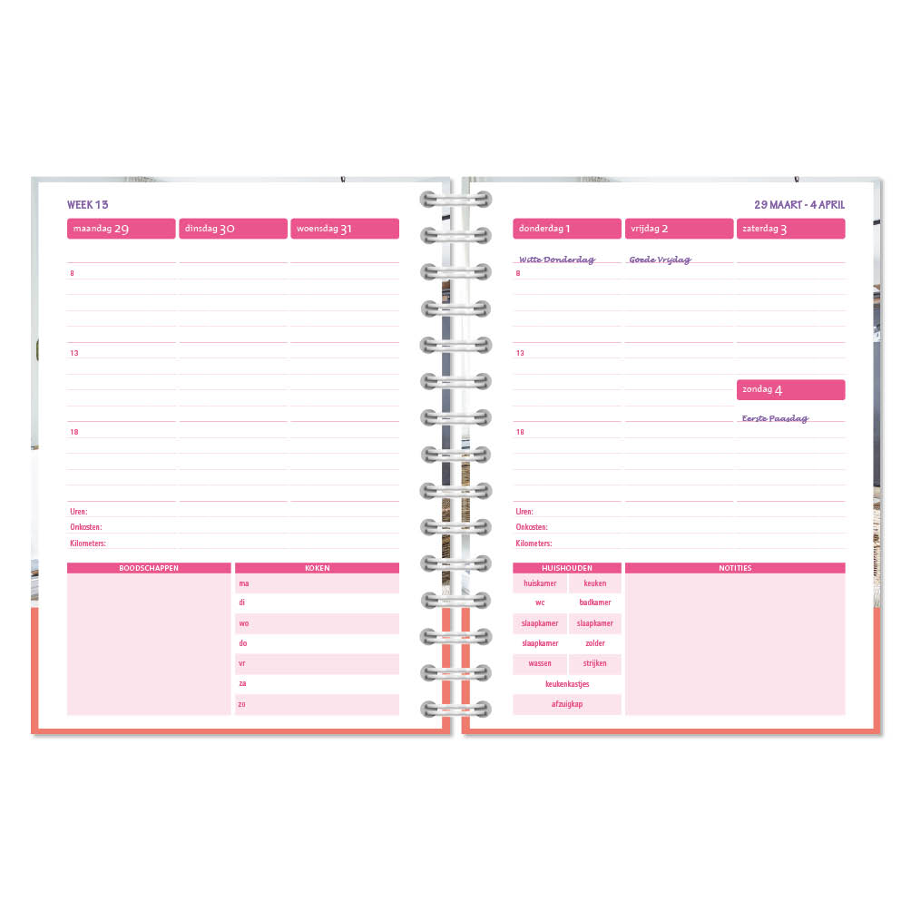 De praktische alles-in-een agenda voor thuis en op je werk! Waarin je al je (zakelijke) afspraken, maaltijden, doelen en financiën kunt bijhouden